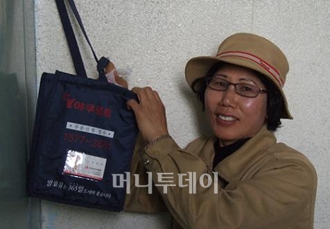 눈이 오고, 비가 와도 윤씨는 주말을 제외한 매일 아침 8시면 집을 나선다. 그날의 배달물량을 점검하고 배달전동차에 제품을 싣고 하루를 연다. 그녀를 기다리는 고객이 200여 가구에 달한다. 오십을 훌쩍 넘긴 나이. 버거울 만도 하지만 화곡동에서도 고지대가 많기로 유명한 지역을 20년째 꼬박 배달했다.