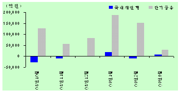 반면 금융시장 불안속에 연일 사상 최고치 기록을 갈아치운 단기상품 '머니마켓펀드(MMF)'는 4184억원이 빠져나갔다. 연말과 3월말 결산을 앞둔 일부 기업이 현금 수요로 인해 환매했기 때문으로 추정된다.