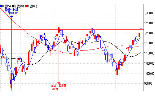 미국 정부가 금융권 부실자산 처리를 위한 1조 달러 규모의 민관투자펀드를 설립한다는 소식과 2월 기존 주택 판매가 예상을 깨고 5.1% 오르면서 다우존스지수가 6.8 급등했다. 이같은 여파로 코스피지수는 장초반 2% 넘는 1225.94를 기록했지만, 전고점이 1228선에 막혀 오름세가 둔화되며 프로그램 매물 압박에 밀려 1210선을 넘나들고 있다.
