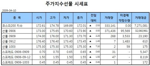 [표]주가지수선물 시세표-10일