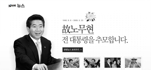 네이버는 메인 페이지에 흑백으로 된 노무현 전 대통령 추모 페이지를 열고 네티즌들의 추모글을 받고 있다. 25일 2시 현재 20만명의 네티즌이 방문해 짧은 추모글을 남겼다. 네이버는 또 노무현 전 대통령 서거 관련 뉴스 페이지를 따로 구성했다.