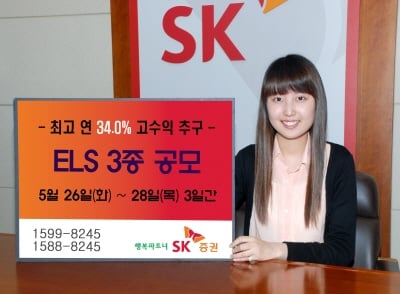 SK증권(2,010원 ▲98 +5.13%)은 오는 26일부터 28일까지 3일 동안 연 수익률 최고 34.0%를 추구하는 원금보장형 및 조기상환형 파생결합증권(ELS)인 'SK증권 제47회, 제48회, 제49회 파생결합증권’ 3종을 공모한다고 25일 밝혔다.