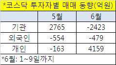 이선엽 굿모닝신한증권 애널리스트는 "코스닥은 개인이 주도하는 시장이지만 최근 기관의 영향력이 절대적"이라며 "기관이 많이 샀던 종목 중 차익실현에 나선 종목과 그대로 들고 있는 종목을 나눠서 볼 필요가 있다"고 말했다.