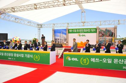 이와 관련해에쓰오일(110,100원 ▲400 +0.36%)은 11일 울산광역시 울주군에 위치한 온산공장에서 아흐메드 에이 수베이 최고경영자(CEO), 박맹우 울산광역시장 등 내·외빈 300여명이 참석한 가운데 '온산공장 확장 프로젝트' 기공식을 개최했다.