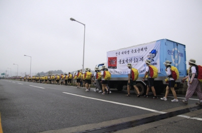 지난 26일 제주도에서 첫 발걸음을 내딘 대학생(원)생들은 오는 26일까지 통일전망대까지 총 700km에 이르는 거리를 도보로 순례할 예정이다.