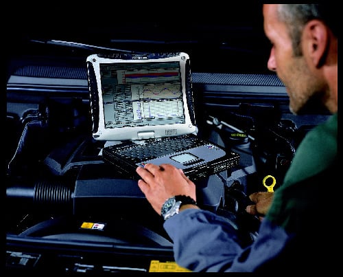파나소닉 ‘터프북’은 자동차에서 하루 종일 사용할 수 있도록 차량 이동의 진동을 견디며 어떠한 상황에서도 작동이 멈추지 않도록 개발됐다.