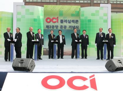 OCI는 1조100억원을 투자한 군산 제2공장 준공으로 연산 1만6500톤의 폴리실리콘 생산능력을 보유하게 됐다. 미국의 햄록(Hemlock)사에 이어 세계 2위의 폴리실리콘 업체로 부상하게 된 것이다.