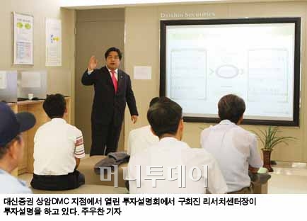 9월23일 오후 5시 동양종금증권 돈암지점. 원상필 투자전략가와 김현중 애널리스트가 투자설명회 강의를 하고 있었다. 이곳을 찾은 고객들은 20~30명가량. 준비된 의자는 대부분 채워졌고, 차분한 분위기가 이어졌다.