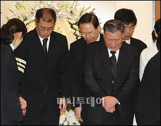 재계에서는 최태원SK회장, 신동빈 롯데그룹 회장, 박삼구 금호그룹 명예회장, 조양호한진(18,640원 ▼190 -1.01%)그룹 회장, 김승연한화(113,700원 ▲2,800 +2.52%)그룹 회장, 강덕수STX(3,530원 0%)회장, 이웅렬코오롱(61,800원 ▼1,000 -1.59%)그룹회장 등이 조문행렬에 동참했다.
