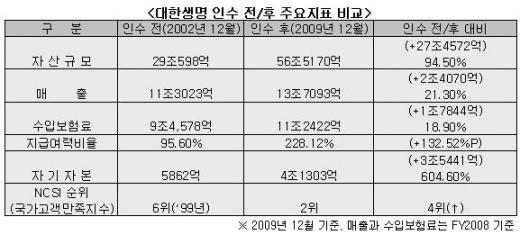 이번 대생 상장은 공적 자금 투입기관의 대표적인 성공사례로도 꼽히고 있다. 지난 2002년 매각주관사였던 메릴린치가 1조6150억 원으로 평가한 대생의 기업가치는 한화가 인수한 후 8년만에 7조6865억 원(상장 첫날 종가기준 시가총액 규모)으로 4.8배 늘어났다.