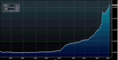 지난달 0.04%포인트(15.82%) 오른 리보 금리는 유럽 금융시장 변동성이 확대되며 5월 첫 주에만 0.082%포인트(23.54%) 급등했다.