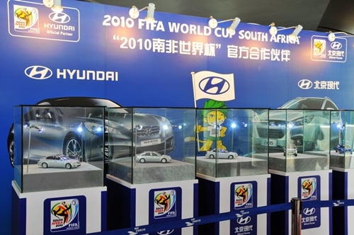 현대차는 지난 7일부터 중국 상하이 엑스포에서 '현대차 기업주간'을 맞아 월드컵 붐 조성을 위한 다양한 마케팅 활동을 전개하고 있다. 현대차는 월드컵 기간 동안 전시관 내에 120인치 대형 LED 화면을 통해 월드컵 영상물을 상영하고, 월드컵 관련 사진을 전시하는 '현대 월드컵 역사관(History Zone)'을 운영 중이다.