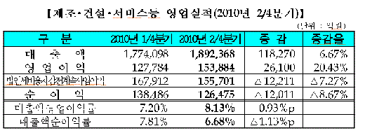 매출액 대비 영업이익률과 순이익률은 각각 8.3%, 6.8%로 집계됐다. 이는 전분기보다 각각 0.26%포인트, 2.15%포인트 감소한 수치다. 금융권의 수익성 악화가 컸고 제조·건설·서비스 기업들의 수익성도 2분기 들어 다소 둔화된 때문으로 해석된다.