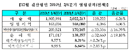기업들의 2분기 실적은 총매출액 202조2213억원으로 1분기보다 6.26% 개선됐고 영업이익은 16조8080억원으로 3.9% 늘어난 것으로 집계됐다. 순이익은 19.1% 감소한 13조8357억원으로 집계됐다.