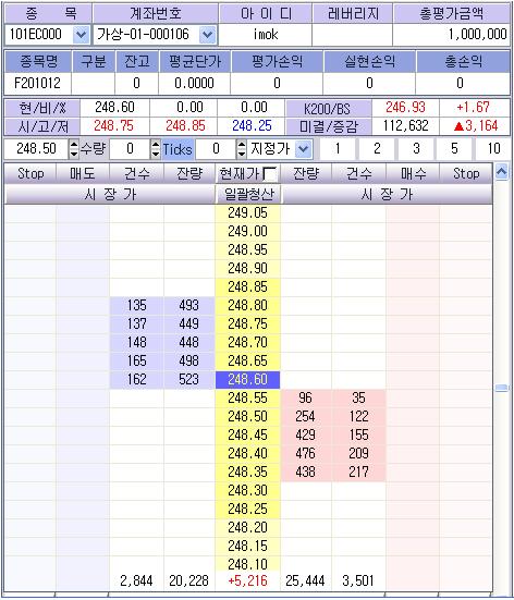 실제 선물시장에서 움직이는 코스피200시세, 그리고 매수매도 잔량 등의 자료를 한국거래소 자회사 코스콤에서 직접 실시간으로 받기 때문에 현실과 괴리가 없다.
