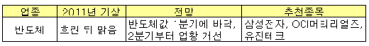 2010년 반도체 업계는 장미빛 전망 속에 한해를 시작했지만 예상보다 빠르고 강했던 D램 가격의 하락으로 인해 여름 이후 힘든 한해를 보냈다. 삼성전자가 연말에 강한 상승세를 보이며 사상 최고가를 갈아 치웠지만 최근 삼성전자 반등의 주요 원인은 반도체 보다는 스마트폰, 태블릿PC, 유기발광다이오드(AMOLED) 실적에 대한 기대감이었다.