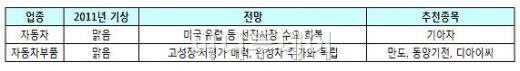 강 연구원은 "생산 및 공급 능력에 여유가 있는 기아차가 자동차 업종 중 가장 유망하다"며 "올해 연 18%가 넘는 성장률을 기록할 것"이라고 밝혔다.