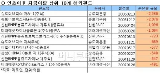 업계관계자는 "해외펀드의 손실상계가 올해로 종료돼 어느 정도 원금을 회복하면 환매하려는 투자자들이 많다"고 말했다.