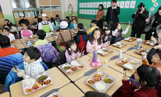 남산초교는 전교생 226명의 비교적 작은 학교다. 이 중 56명의 아이들이 저소득층 가정의 자녀를 위한 '중식지원' 대상이다. 변창환 교감은 "50명의 중식지원 대상 학생들 중 1~4학년인 30명은 올해부터 무상급식 덕분에 '공짜밥'을 눈치보지 않고 먹게 됐다"고 말했다.