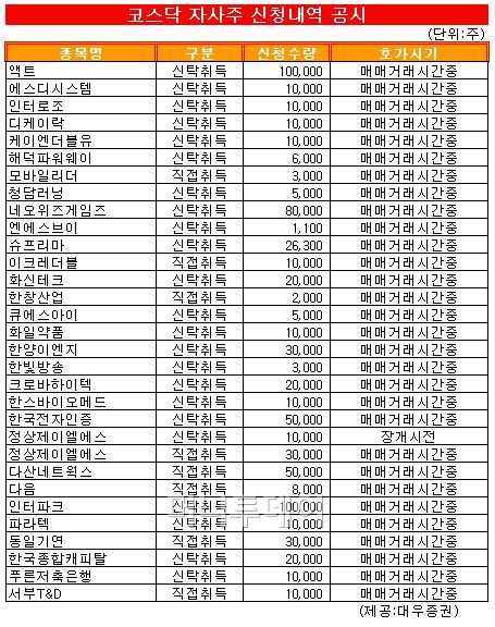 속보 [표]코스피·코스닥 자사주 신청내역-29일