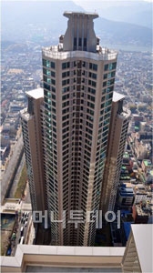 이 아파트가 위치한 두산동 황금네거리는 각종 상업시설을 비롯해 금융, 행정, 생활편의 시설도 함께 조성돼 있다. 더불어 마천루가 빼곡히 들어선 곳이기도 하다. 그렇지만 이곳은 다른 시설보다 빼어난 조망을 자랑한다. 최고층이 57층으로 조망권과 일조권을 극대화한 것은 물론 가구 사이의 간섭을 최소화하면서 방향과 통풍을 고려해 단지를 배치했기 때문이다.