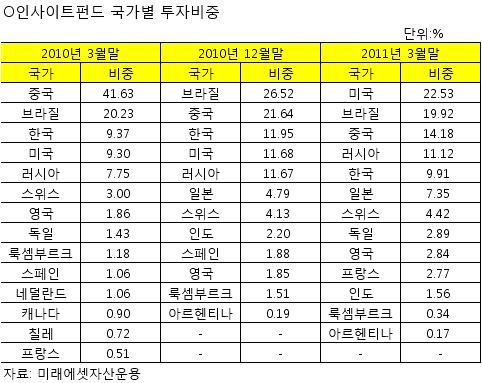 하지만 미래에셋의 주력펀드인 인사이트펀드는 이머징 주식투자 비중을 대폭 축소하고 오히려 미국 등 선진국 주식투자 비중을 크게 늘린 것으로 나타났다.