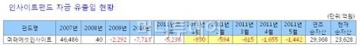 펀드평가사 제로인에 따르면 지난해 2007년 설정당시 4조원이 넘었던 설정액은 지난 2009년 2292억원, 2010년 7713억원이 환매되면서 2조원대로 줄어든 상태다. 올해 들어서도 1분기에 2139억원이 빠져나갔고, 4, 5월 역시 3097억원이 이탈하는 등 갈수록 설정액이 줄어들고 있는 실정이다.