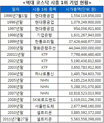 ‘현대중공업, KTF, NHN, 셀트리온…’