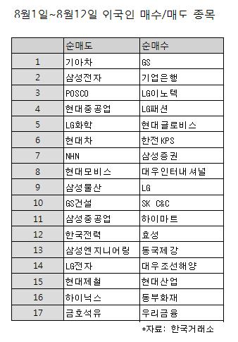 2주간 외국인 순매도 1위 '기아차', 순매수 1위 'GS'