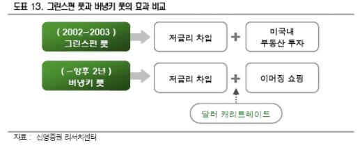 김세중 연구원은 "미국 경제가 일본식 저금리 장기 불황으로 이어질 수 있지만 이는 나중 일이다"며 "당장은 달러 캐리 트레이드가 이머징 마켓의 자산 랠리로 이어질 것"이라고 진단했다.
