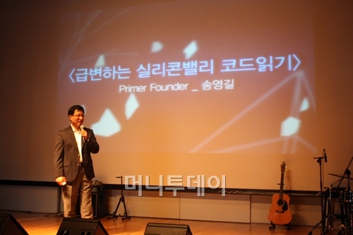 특히 이번행사에는 미국 실리콘밸리의 한인 이공계 그룹 ‘베이에리어 K그룹’ 회장인 송영길 부가벤처스 대표가 강연자로 나와 눈길을 끌었다. 송 대표는 ‘급변하는 실리콘밸리 코드읽기’란 주제로 20분간 발표해 관객의 이목을 집중시켰다. 그는 “미국 신용등급이 강등됐다고 하지만 실리콘밸리가 끊임없이 부를 창출하고, 이 부가 미국 밖으로 빠져나가는 게 아니라 미국 안에서 더 많은 부가가치를 창출하고 있다”며 “빚을 통해 중국의 값싼 제품을 소비하는 미국경제의 한계를 혁신 기업들이 극복하고 있다”고 진단했다. 그는 이어 “지금은 엔지니어가 스스로 회사를 창업하는 엔지니어 천국의 시대”라며 패러다임의 변화와 스타트업 성장 전략을 설명했다.