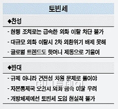 이승호 자본시장연구원 연구위원은 "외화 유출입 문제는 거시건전성 강화 차원에서 접근해야 할 문제지 규제 차원에서 볼 문제가 아니다"라며 "개방체제를 거스를 수 없는 한 토빈세 논쟁은 철 지난 얘기를 반복하는 것에 불과하다"고 말했다.