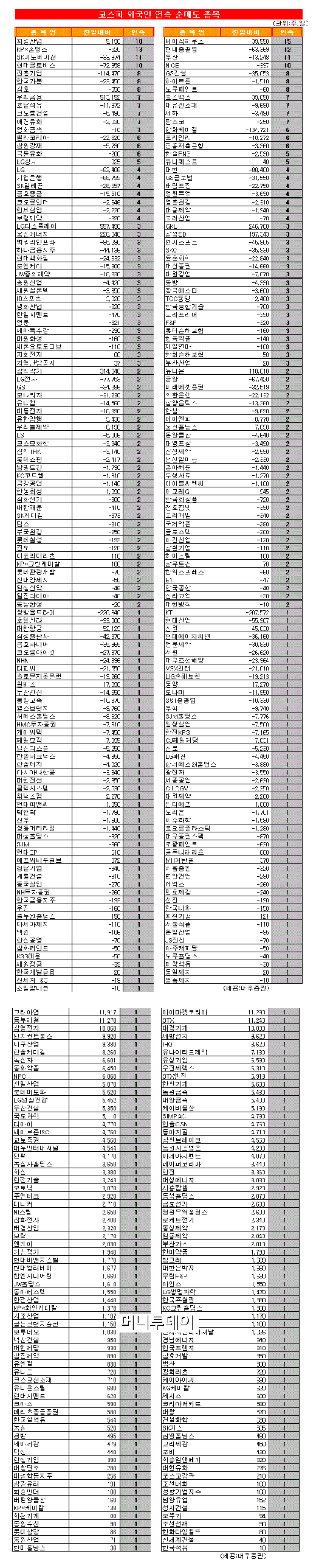 속보 [표]코스피 외국인 연속 순매도 종목-22일