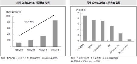 미국, EU, 중국, 인도 등이 스마트그리드 구축에 발벗고 나서는 이유가 여기에 있다. 관련업계에 따르면 세계 스마트그리드시장은 연평균 9.8%의 성장세를 보이며, 2030년 8700억달러 규모에 달할 전망이다.