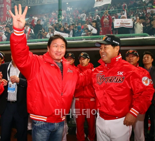 SK와이번스는 만년 꼴지 팀인 쌍방울레이더스 선수들을 주축으로 구성했고 구단 역사도 짧았지만 김성근 전 감독 지휘 아래 21세기 최고의 팀으로 떠올랐다. 이같은 모습은 SK그룹의 성장사와 닮았다는 얘기를 듣는다. SK그룹은 학생복 등 섬유사업을 모태로 시작, 국내 주요기업에 비해 출발이 늦었지만 인수합병(M&A)을 통해 통신과 정유사업에 뛰어들면서 한국 4대그룹으로 도약했다.