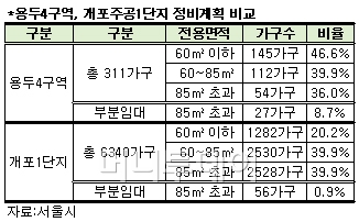 용두4구역은 2010년 3월 변경된 '서울시 도시·주거환경정비기본계획'에 따라 계획 용적률을 변경(20% 완화)해 60㎡(전용면적)이하의 소형주택을 추가했다.