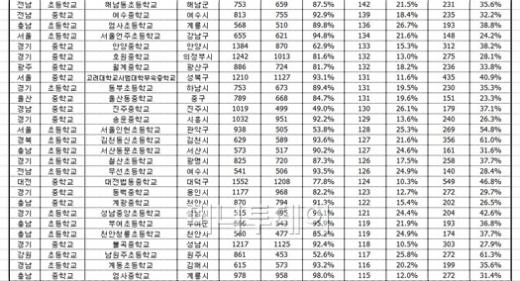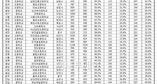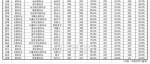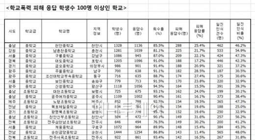 [표]학교폭력 피해응답 100명 이상 학교