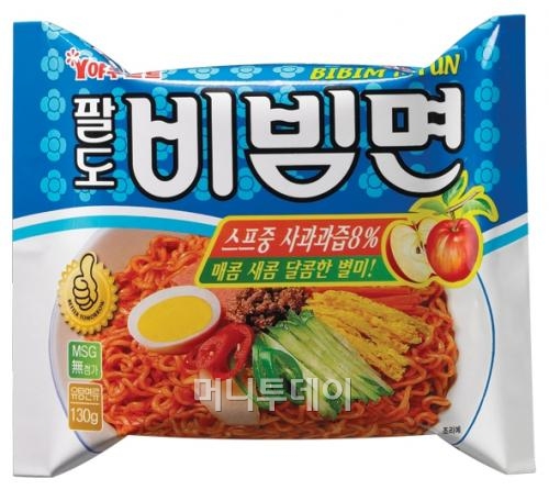 유탕면 시장에서 우위에 있는농심(372,500원 ▼4,000 -1.06%)(찰비빔면·고추비빔면)과삼양식품(1,290,000원 ▲52,000 +4.2%)(열무비빔면), 오뚜기(메밀비빔면)도 비빔면 제품을 내놓고 있지만 비빔면에서 팔도의 아성은 굳건하다.
