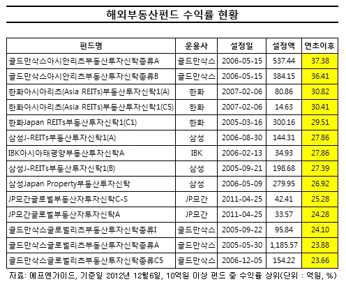 해외부동산펀드 올 수익률 20~30%대··· 국내 부동산펀드는 기숙사펀드만 잘 나가