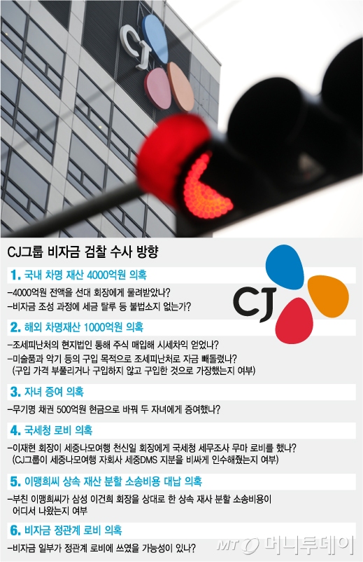 이 때문에 CJ그룹 오너 일가 비자금에 대한 검찰 수사는 앞으로 전방위적으로 확대될 수 있다는 관측이 나온다. 비자금 조성 과정에서 세금 탈루 여부는 물론 △자녀 증여세 탈루 의혹 △재산 국외 도피 가능성 △국세청 세무조사 무마 로비 의혹 △비자금 정관계 로비 의혹에 이르기까지 검찰 수사는 단순 비자금 수사 수준을 넘어설 가능성이 있다.