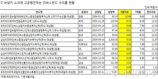 이계웅 신한금융투자 팀장은 “리버스펀드를 잘 활용하면 금융시장 변동성에 효율적으로 대응할 수 있다”며 “다만 정보력이 부족한 개인투자자들은 금융시장의 단기 방향성만 보고 베팅하기 보다는 헤지수단으로 활용하는 것이 바람직하다”고 말했다.
