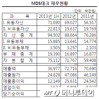 MDS테크놀로지의 지난해 매출액은 635억원, 영업이익은 81억원으로 이익률이 12.77%에 달했다. 이 회사의 올해 예상 매출액은 737억원, 영업이익은 95억원(순이익 102억원)으로 이익률이 13%대를 돌파할 것으로 기대된다.
