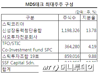 22일 M&A(인수·합병) 업계에 따르면 MDS테크놀로지 최대주주인 스틱인베스트먼트 등은 올 하반기 보유 지분 매각을 결정하고 10월 초 이 거래의 매각 자문사를 선정하기로 했다. 스틱은 스틱코리아 신성장동력첨단융합사모투자전문회사 외 3개사를 통해 MDS테크놀로지의 경영권 지분 38.7%(336만4477주)를 보유하고 있다.