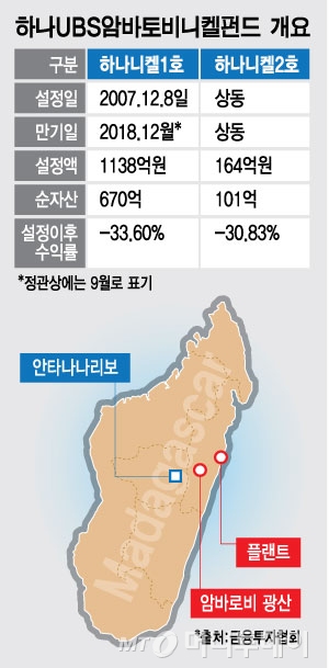 4일 금융투자업계에 따르면 하나UBS자산운용이 지난 2007년 설정한 '하나UBS암바토비 니켈해외자원개발투자회사(이하 하나니켈)' 제1호와 2호는 한국광물자원공사를 상대로 지난달 28일 서울중앙지법에 수익금 지급기간 확인청구 소송을 제기했다.