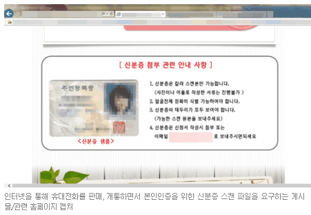 온라인 판매점은 상황이 더 심각하다. 인터넷으로 가입자를 모집하면서 신분증 사본을 스캔해 메일로 받는 경우가 많기 때문. 현행법상 명백한 위법이다. 온라인에서 본인 인증방법은 신용카드와 공인인증서로 제한돼 있다.