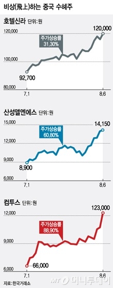 그런가하면 최근 호실적을 달성한 모바일게임주 역시 해외시장으로 수요를 확대해 나가며 중국 수혜주로 급부상중이라는 분석이다.