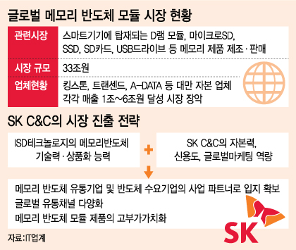 SK그룹의 IT서비스업체SK C&C(425,000원 ▲11,000 +2.66%)가 글로벌 메모리 반도체 모듈 시장에 진출한다.