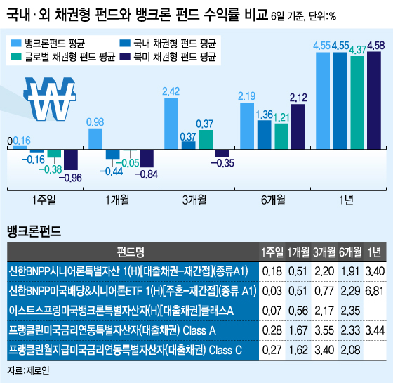 실제로 펀드평가사 제로인에 따르면 뱅크론 펀드 세미나 이후 지난 6일까지 프랭클린미국금리연동특별자산 펀드로는 18억원의 자금이 유입됐다. 이스트스프링미국뱅크론특별자산 펀드에는 지난 3월부터 두달여동안 493억원이 들어왔다.