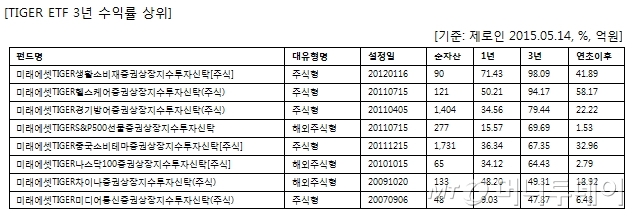 국내 ETF 3년성과 상위 10개중 8개가 미래에셋 ETF