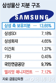 ◇엘리엇, 기습적인 지분공시=엘리엇은 이날 보도자료를 통해 “제일모직의 삼성물산 합병 계획안은 삼성물산의 가치를 상당히 과소평가 했을 뿐 아니라 합병조건 또한 공정하지 않다”며 “삼성물산 주주들의 이익에 반한다고 믿는다”고 밝혔다.